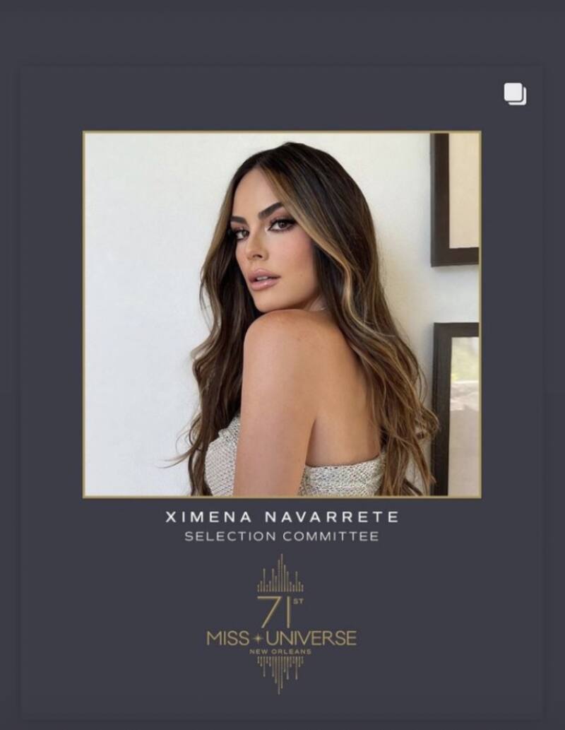 Una de las integrantes de este panel de jueces será la mexicana y ex Miss Universo Ximena Navarrete, quien por medio de su cuenta de Instagram reposteó la publicación en la que confirma su participación en el certamen y afirmó sentirse muy feliz: "Estoy muy emocionada".