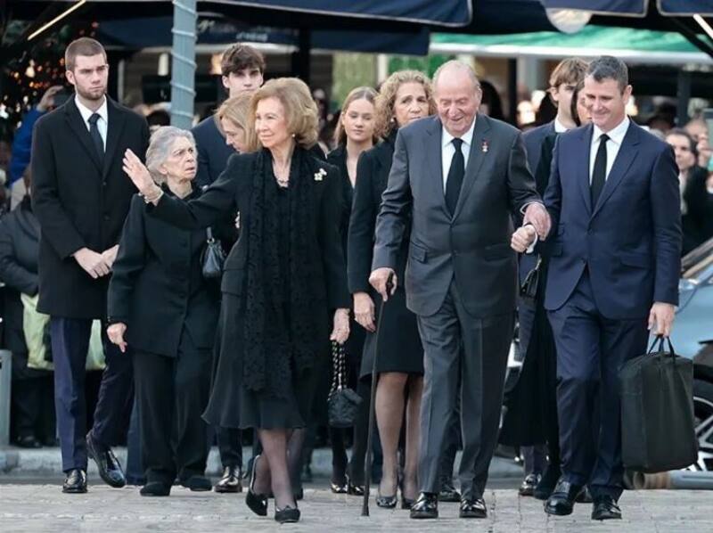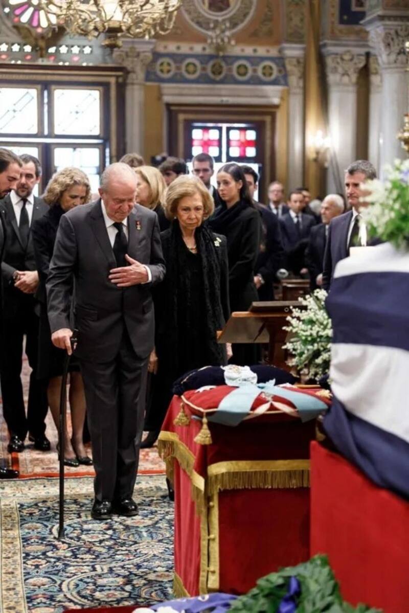 Todos los miembros importantes de la monarquía de España, con excepción de la princesa Leonor y su hermana Sofía, llegaron hasta la Catedral de Atenas para despedirse de Constantino, y la presencia del ex monarca no pasó inadvertida. El padre de Felipe VI se mostró desmejorado mientras caminaba con la ayuda de un bastón.
