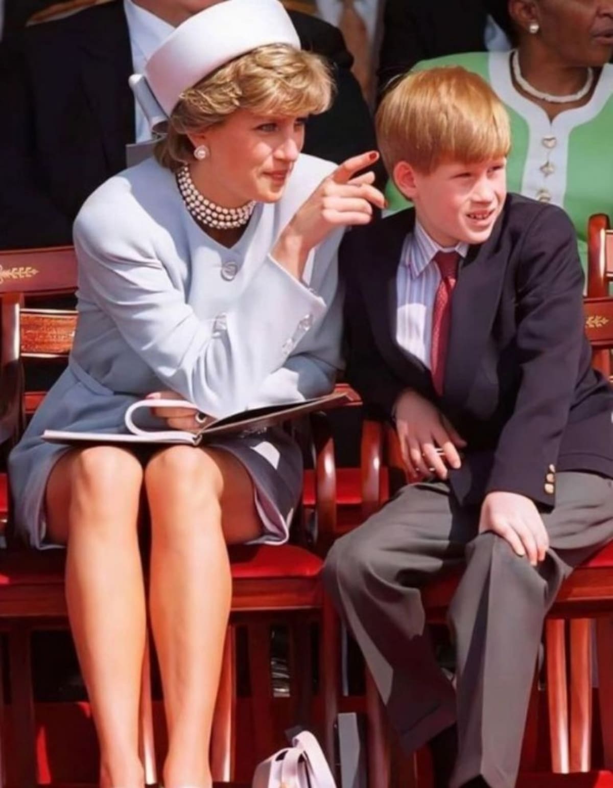 En ambos aparecía la portada del periódico donde su madre, la princesa Diana de Gales, había anunciado que estaba embarazada de su segundo hijo, justamente Harry, el 14 de febrero de 1984.