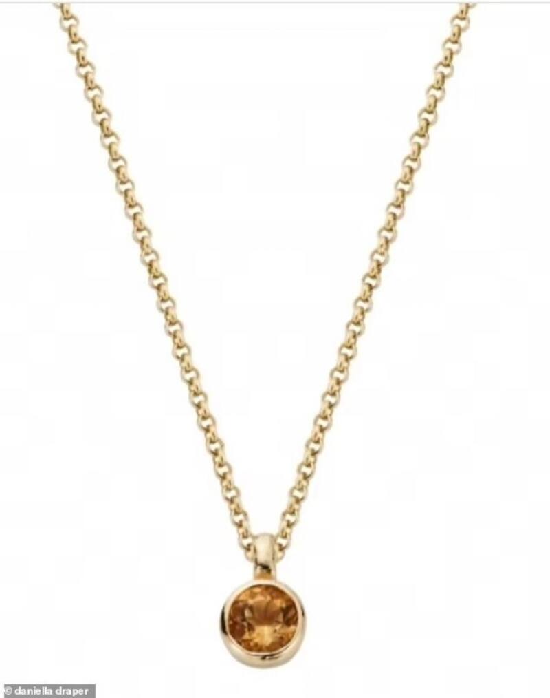 Según el sitio web de su diseñadora dice sobre el amuleto: "La piedra de nacimiento de noviembre, el citrino, ayuda a manifestar sus sueños más grandes, trayendo más éxito y prosperidad". Kate suele poner mucha atención en los detalles de sus collares, ya que entre sus favoritos figuran cadenas que cuentan con las letras G, L y C, haciendo referencia a sus hijos.