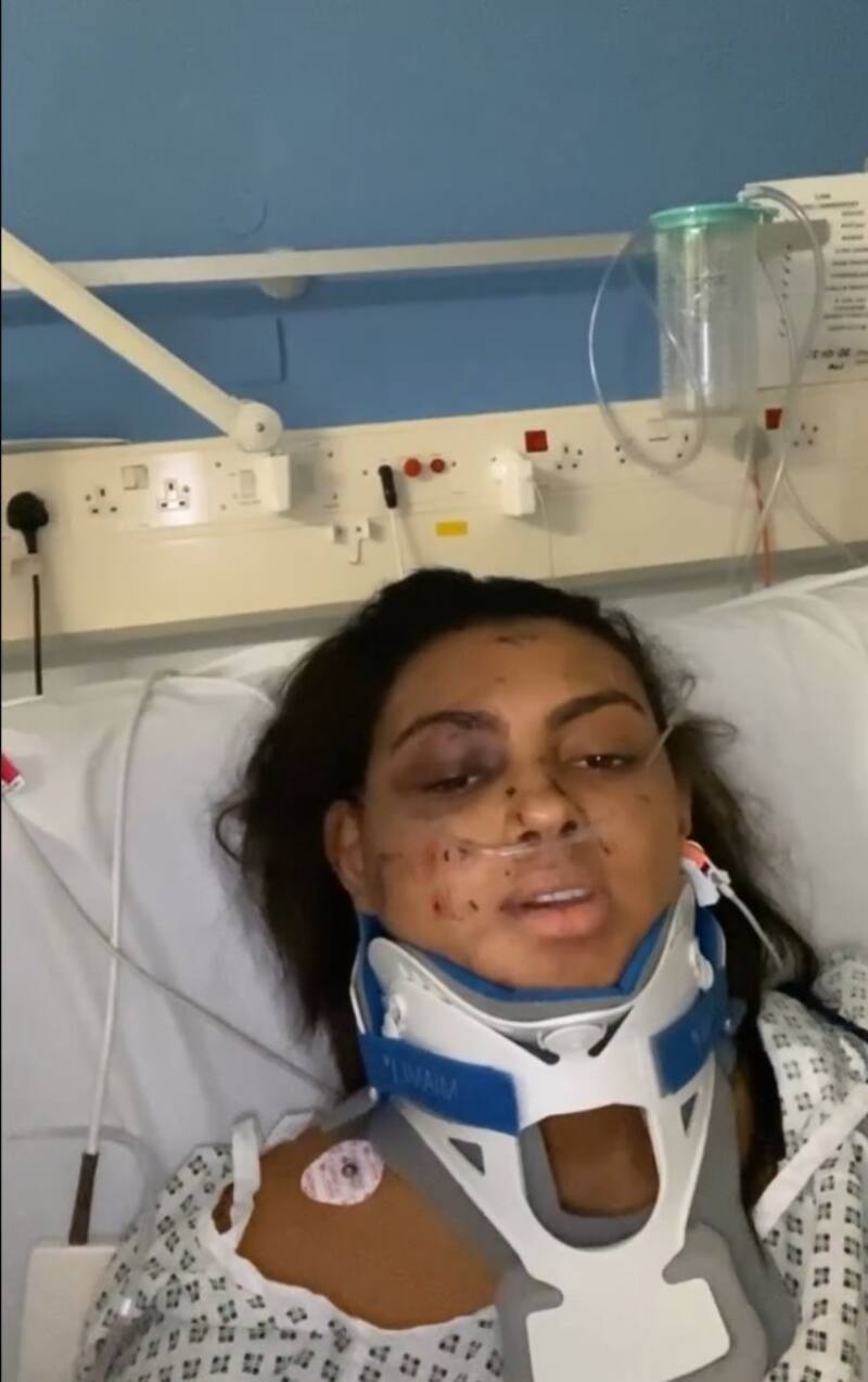 De acuerdo a BBC, la joven fue víctima de un accidente de tráfico mientras conducía su BMW M4 el jueves por la noche en la localidad de Bridgend. Debió ser llevada de urgencia al Hospital Universitario de Gales, en Cardiff, donde fue atendida por las heridas de diversa gravedad, entre ellas una fractura de pelvis y dos huesos rotos en el cuello, que dejaron en vilo su participación en Miss Mundo.