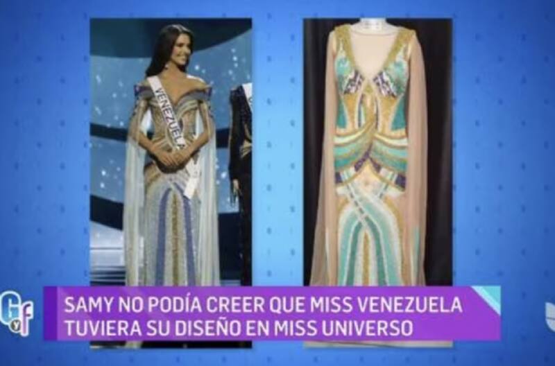 El diseñador Samy Gicherman indicó en entrevista para el programa El gordo y la flaca que reconoció que su diseño fue copiado: “Primero me quité los lentes y me los volví a poner porque no lo podía creer. Entré en shock, inmediatamente lo critiqué porque yo fui el creador de esta pieza el año pasado y lo veo ahora en la chica que está representando a Venezuela con una pieza que es exactamente igual”.