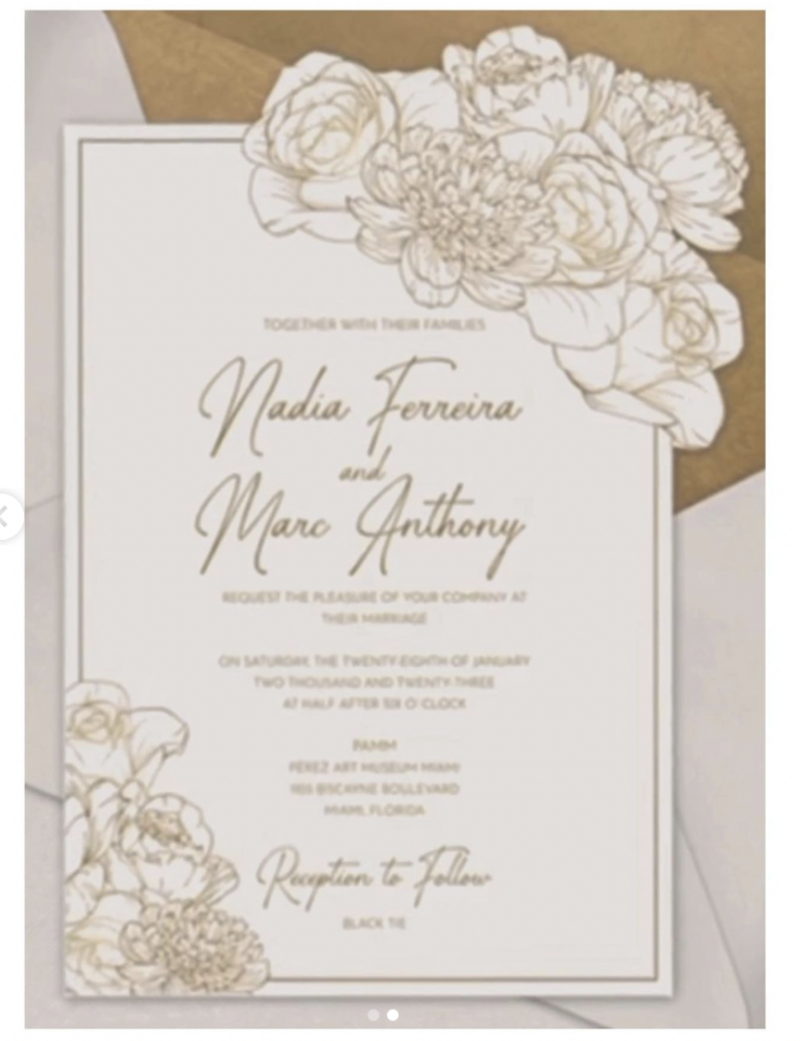 Nadia Ferreira y Marc Anthony estuvieron cobijados por sus más grandes amigos, invitados de primer nivel que llegaron a Miami de todo el mundo, entre ellos se destacan la familia Beckham, Salma Hayek, Lin Manuel Miranda, Luis Fonsi, Maluma, Romeo Santos, y Carlos Slim, a quienes, como el resto de los asistentes, les retiraron el celular para salvaguardar la privacidad del evento.