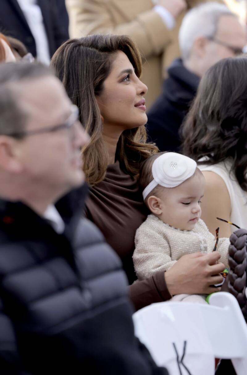Durante el evento que se realizó en Los Ángeles fue la primera aparición pública de la hija de la actriz india y el cantante, y para esta ocasión Malti portó un conjunto beige y una diadema con una flor blanca.