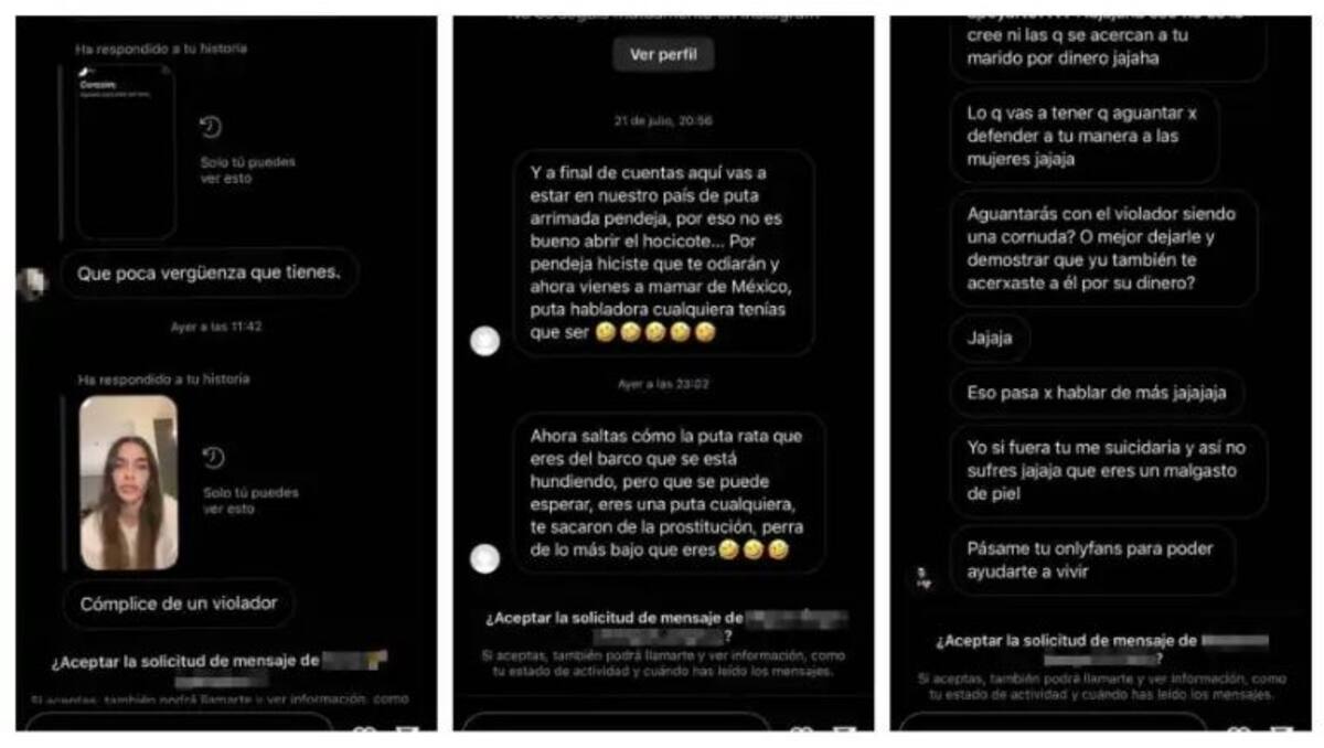 La esposa del brasileño denunció el pasado viernes estar siendo víctima de acoso en las redes sociales y reveló algunos de los mensaje: “¡Eres una hija de pu..! Tu marido es un violador” y “Ahora saltas como una rata que eres del barco, que se está hundiendo, pero que se puede esperar que eres una pu... cualquiera”, fueron algunos de los insultantes mensajes expuestos por Joana Sanz, quien continúa pidiendo respeto.