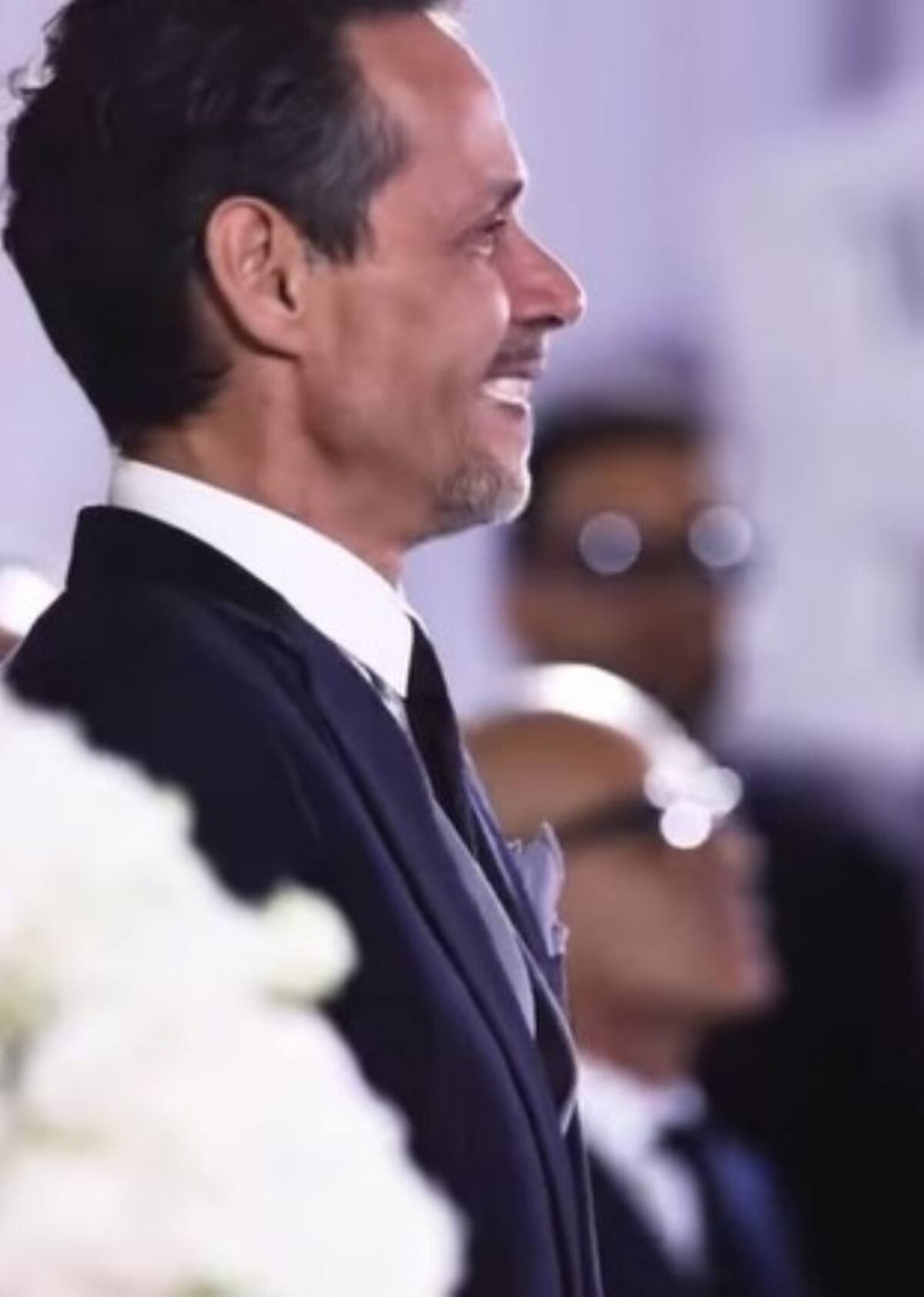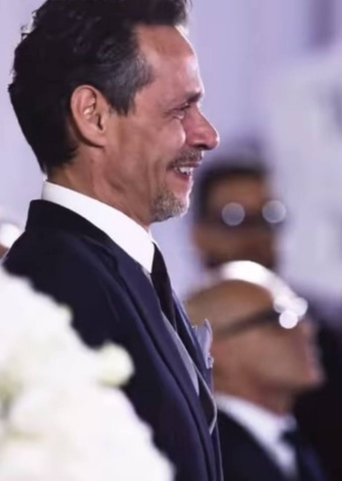 Cuando los centenares de asistentes a la boda fueron invitados a desplazarse al ambiente donde se realizaría la ceremonia y el salón se llenó silencio, Marc Anthony se llevó las temblorosas manos a sus ojos llorosos.