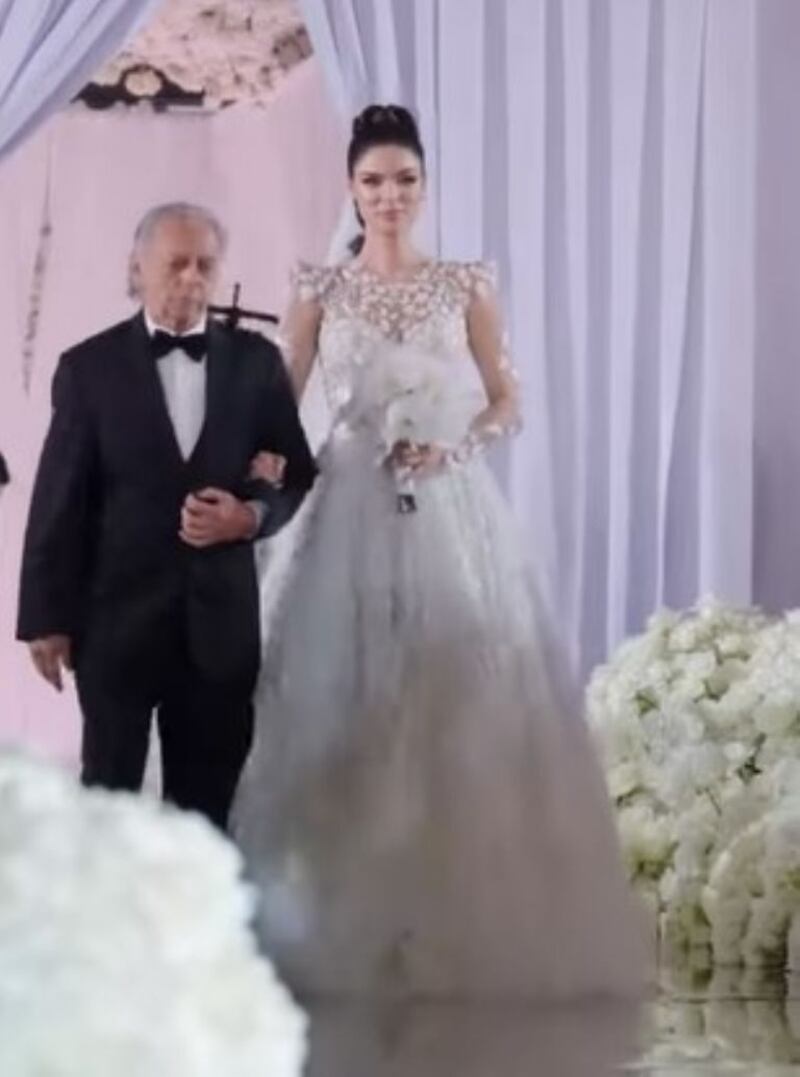 La caminata de la novia fue parsimoniosa, cuenta la testigo, pero lo suficientemente rítmica para que los fotógrafos y videístas pudieran hacer su trabajo, los invitados pudieran admirar el hermoso vestido y la fascinante expresión de Nadia llenara el salón de armonía.