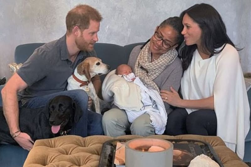 Harry relata que mientras Meghan Markle y él se encontraban en el Hospital Portland de Londres, en mayo de 2019, Meghan "rebotaba en una pelota púrpura gigante cuando se puso en labor de parto y luego se metió en un baño y enumeró himnos conmovedores”, mientras que el duque de Sussex intentaba crear un ambiente pacífico para su esposa iluminando la habitación con velas eléctricas y colocando una fotografía de la princesa Diana, su madre, en la mesa de parto para sentir que los acompañaba en ese importante momento.