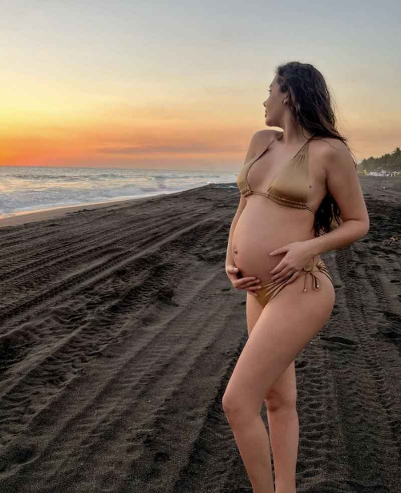 Guevara presumió su avanzado embarazo en un bikini nude que dejó a sus seguidores con la boca abierta, ya que su embarazo fue anunciado de forma inesperada.