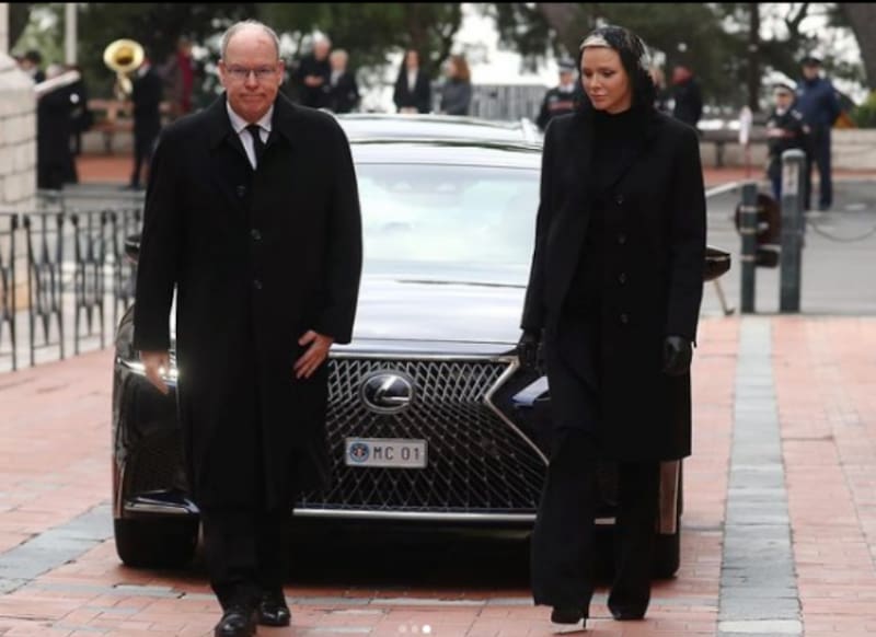 La pareja llegó a la catedral de San Nicolás de Mónaco con los rostros inundados de tristeza por la pérdida de quien consideraban uno de sus más queridos amigos. Como siempre, Charlene se convirtió en el centro de las miradas, ya que pocas veces se le había apreciado vistiendo de luto.