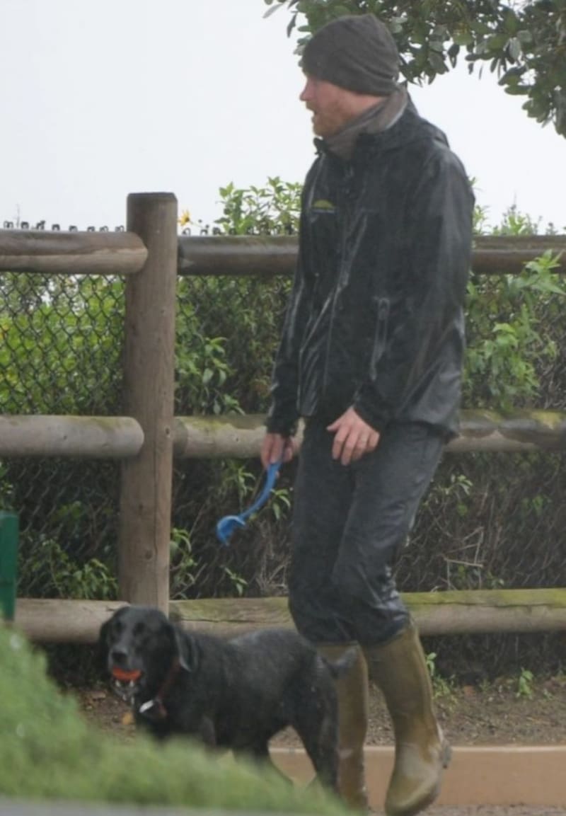 El duque de Sussex fue visto muy tranquilo con su labradora en una lluviosa jornada, al parecer muy al margen de la acusación que hizo sobre William de "tirarlo al suelo" durante una discusión sobre Meghan Markle que salió a la luz pública.