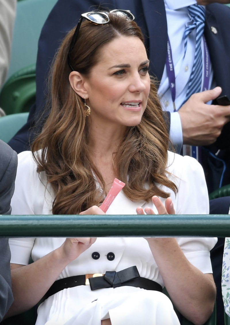 Ese labial en el tono Rose Shimmer es el favorito de Kate Middleton y en 2019 rompió el protocolo en Wimbledon al retocar su bálsamo labial en público, raro momento que no pasó desapercibido por el público.