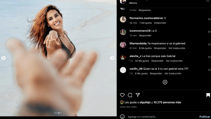 “La mano de Gabriel”, “La tercera donde Gabriel le está ofreciendo su mano”, “Ya muéstranos si es de Gabriel”, “¿Quién es la 3 tu con Gabriel Soto?”, “Sí es la mano de Gabriel chequen las fotos que se tomo Irina en la misma posición en la playa y ahí sale su tatuaje”, “Obviooooo Gabriel Soto”, “Sarita me gusta más la #3 se ve muy bien esa mano diciendo aquí estoy yo para ti.... que Dios te bendiga en este nuevo año y te traiga un gran amor alguien muy especial para ti un abracito”, fueron algunos de los comentarios que recibió Sara Corrales.