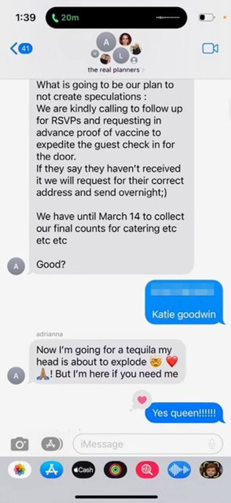 “Voy a tomarme un tequila antes de que me explote la cabeza. Pero estoy aquí por si me necesitas”, le lee en una de las capturas de pantalla que difundió el medio sobre una conversación que tuvo Arianna Grijalba con la futura novia. En otra de las capturas de pantalla se muestra como la actriz estaba cansada de tener que corregir el trabajo de las chicas.