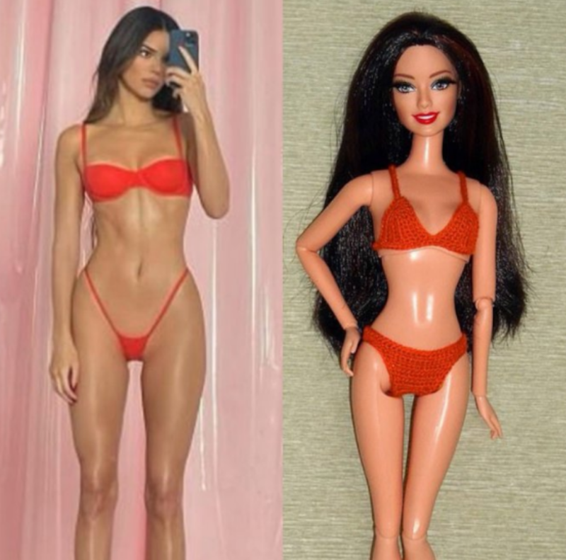 En una sesión de fotos junto a sus hermanas Kim y Kylie durante el 2021, la joven compartió mediante su cuenta de Instagram un par de imágenes individuales frente al espejo, cuyo post también llamó la atención por su cuerpo muy similar en proporciones a la de una muñeca Barbie, el cual se divisa alterado por la longitud de su obligo.