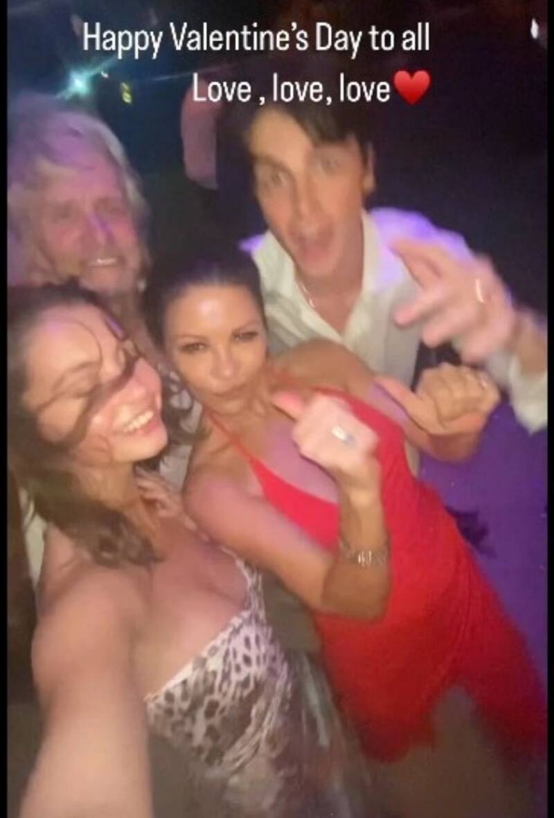 Fue la actriz de Merlina quien llevó la voz cantante, al grabar con su móvil el pasaje en que la familia en plenitud se instaló en la zona de baile para moverse mientras de fondo se escuchaba el tema del DJ italiano. Quienes presenciaron la escena no pudieron más que admirar a un entregado Michael Douglas, quien ya cerca de los 80 años aún tiene energía para repartir.