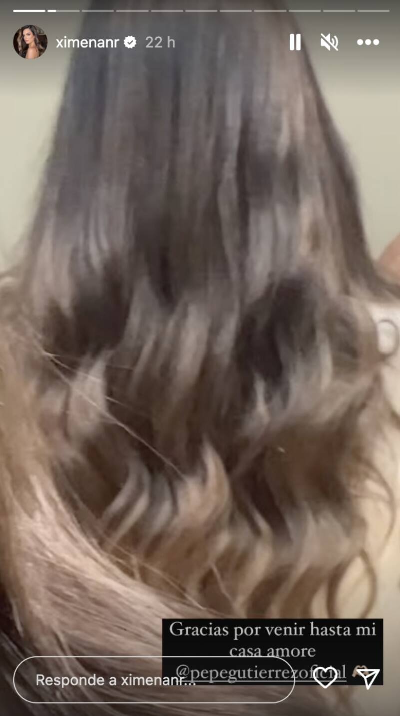 Por medio de sus historias, Ximena contó que al principió no quería ponerse extensiones, pero Pepe la convenció cuando le mostró el material y le gustó la idea de refrescar su apariencia luciendo una cabellera más larga.