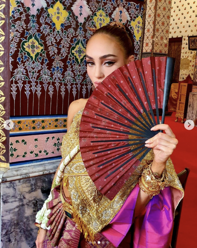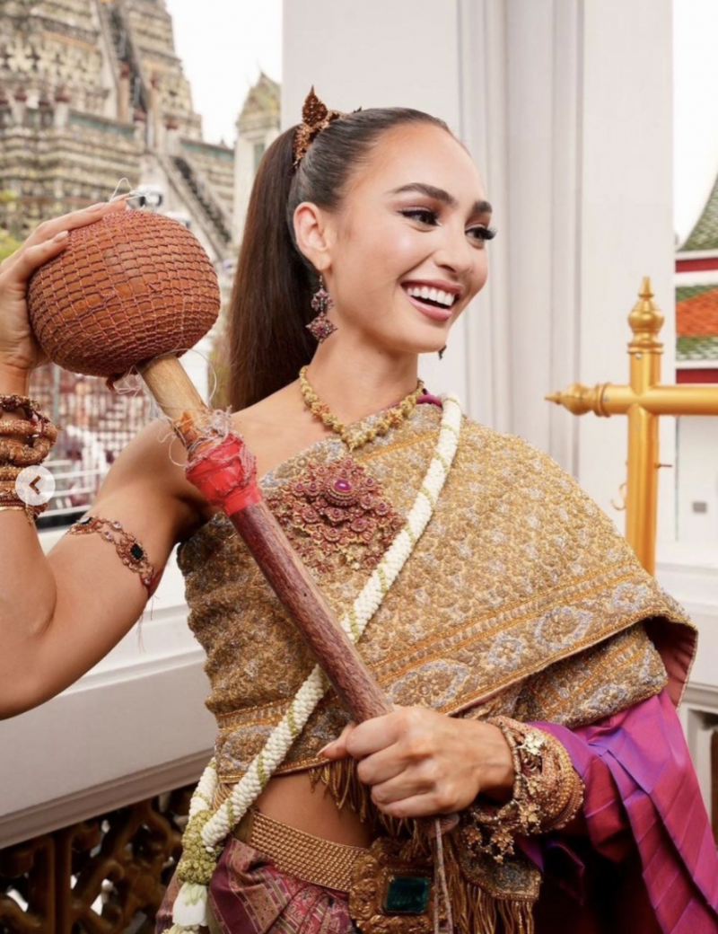 Esta mañana me vestí con magníficos trajes tradicionales tailandeses y visité el Templo del Amanecer Wat Arun. Cada rincón del templo estaba cubierto de preciosos y detallados patrones y tejidos que me dejaron sin palabras. Gracias Tailandia por darme la oportunidad de disfrutar de tu cultura”, escribió en su posteó la Miss Universo.
