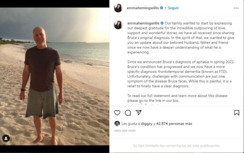 “Hoy en día no existen tratamientos para la enfermedad, una realidad que esperamos pueda cambiar en los próximos años. A medida que avanza la condición de Bruce, esperamos que la atención de los medios pueda enfocarse en arrojar luz sobre esta enfermedad que necesita mucha más conciencia e investigación”, indicó la familia.