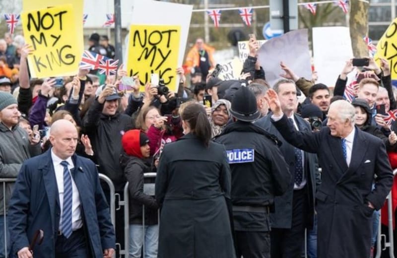 El grupo República, que tiene como objetivo lograr un jefe de Estado electo para Inglaterra, lleva a cabo un plan de acciones que finalizará con la coronación del Rey Carlos III, programada para el 6 de mayo próximo en la Abadía de Westminster. En sus redes sociales publicaron esta mañana: "Nos vamos a Milton Keynes hoy, para hacerle algunas preguntas al Rey".