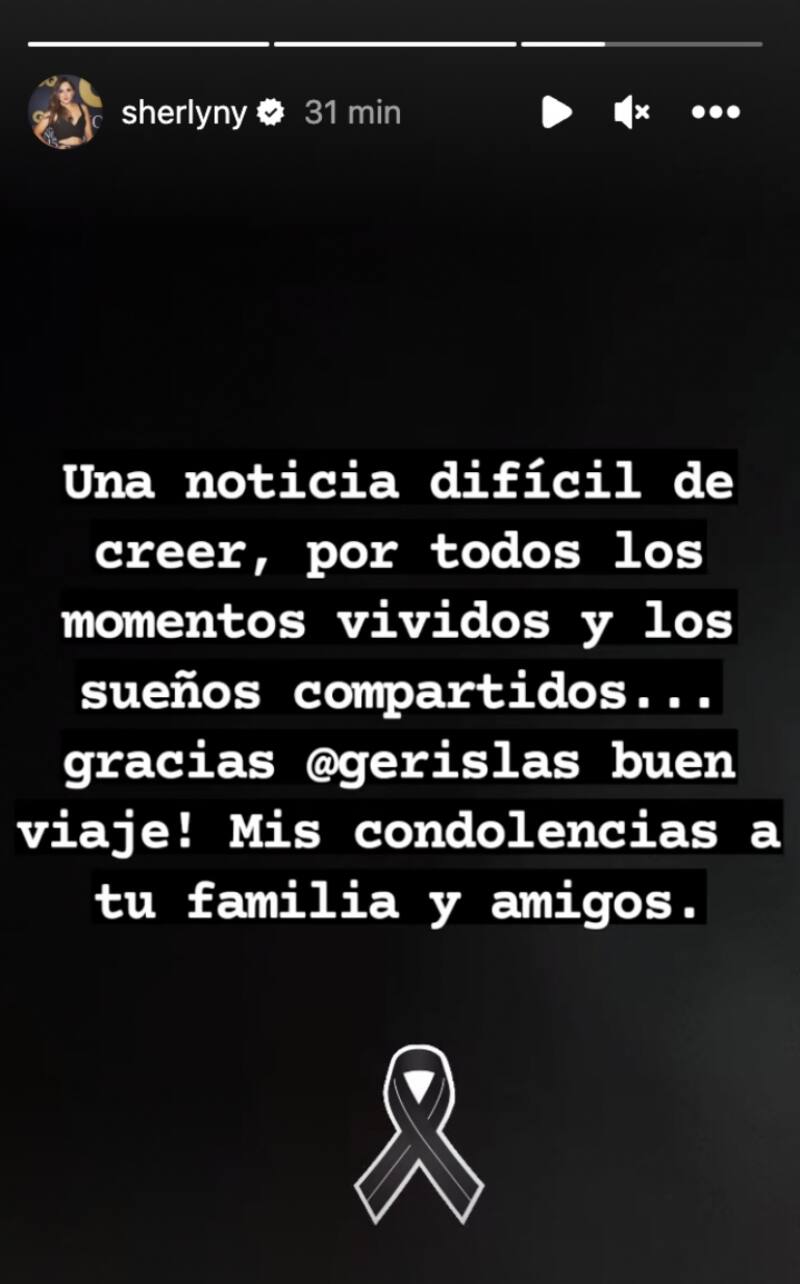 Luego de varias horas de que se diera a conocer el fallecimiento de Gerardo, Sherlyn publicó en sus historias de Instagram un mensaje de despedida para quien fue su pareja con asombro y también externó su pésame para sus deudos.