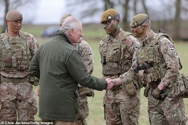 Este lunes, el rey se reunió con un grupo de reclutas militares ucranianos que se encuentran cumpliendo un entrenamiento básico de combate de cinco semanas en Wiltshire. En conmemoración del primer aniversario desde que comenzó la invasión rusa en Ucrania, Carlos III le mostró su apoyo a los soldados.