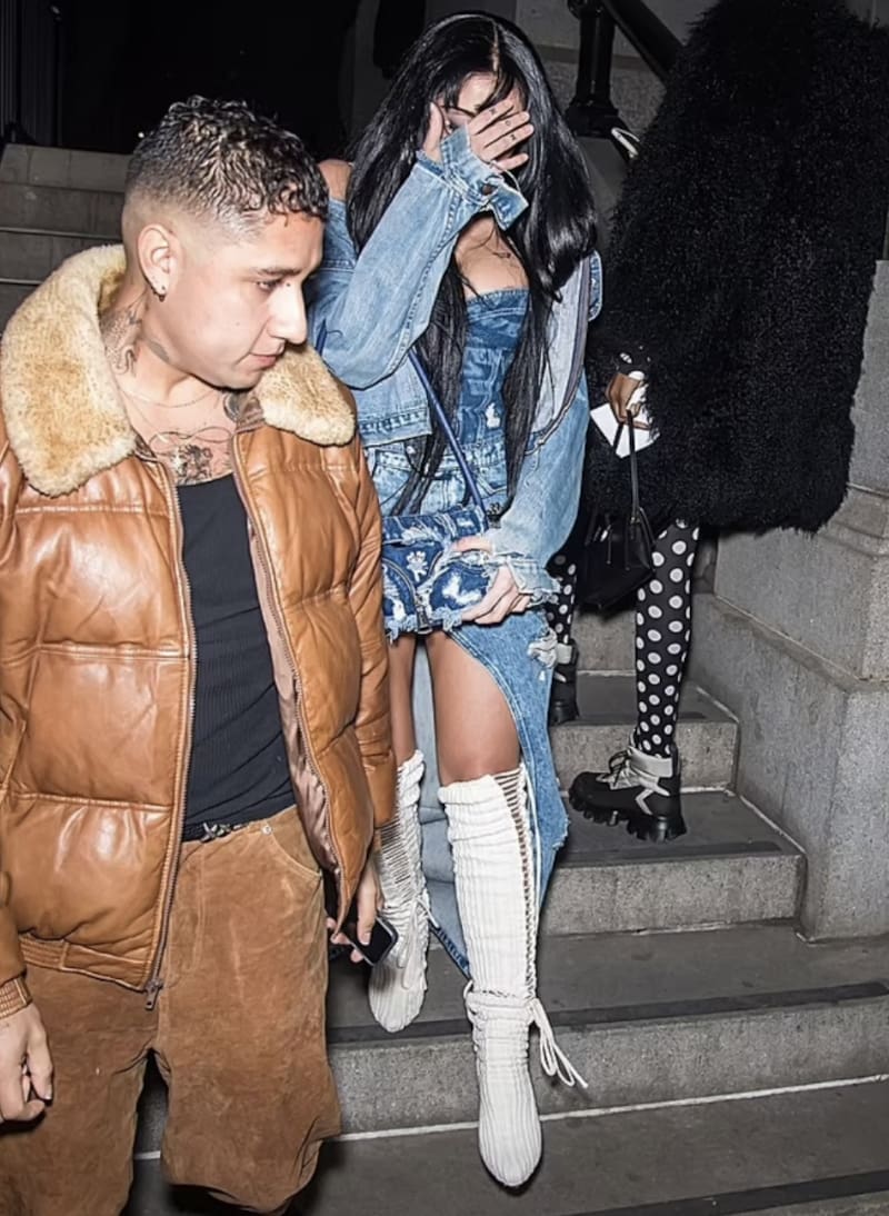Lourdes vestía con un original conjunto de mezclilla de top, falda y chamarra al que acompañó con unas llamativas botas de tacón de aguja blancas, que contrastaban con su pelo largo, lacio y negro.