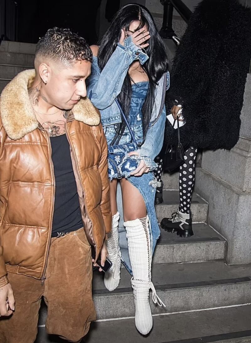 Lourdes vestía con un original conjunto de mezclilla de top, falda y chamarra al que acompañó con unas llamativas botas de tacón de aguja blancas, que contrastaban con su pelo largo, lacio y negro.