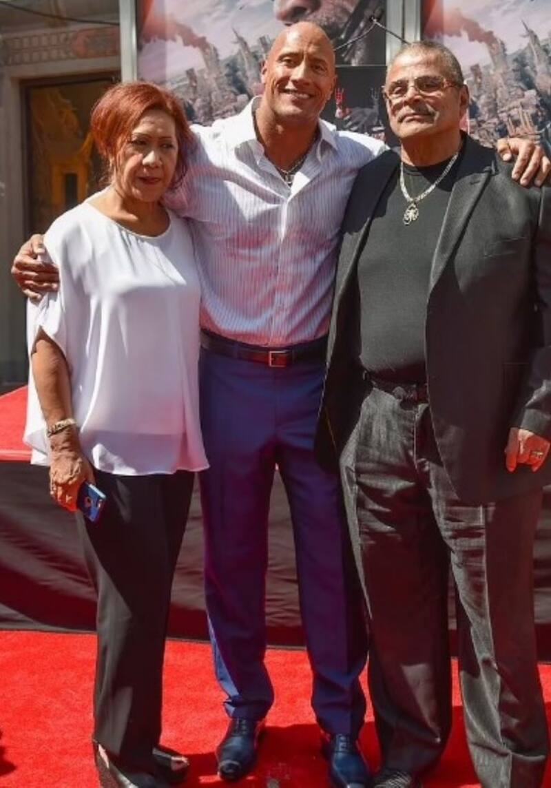 Dwayne junto a su madre, Ata, y a su fallecido padre, Rocky