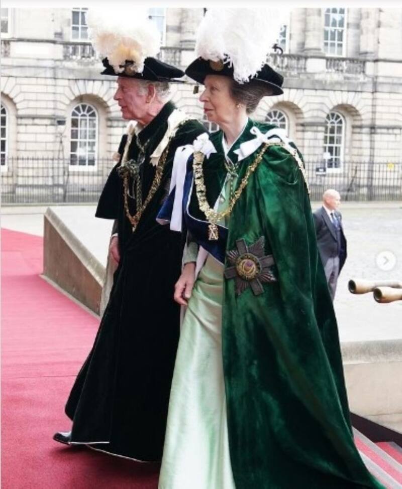 El rey Carlos III y su hermana, la princesa Ana, entran a Holyrood cuando aún pertenecía a la fallecida reina Isabel II