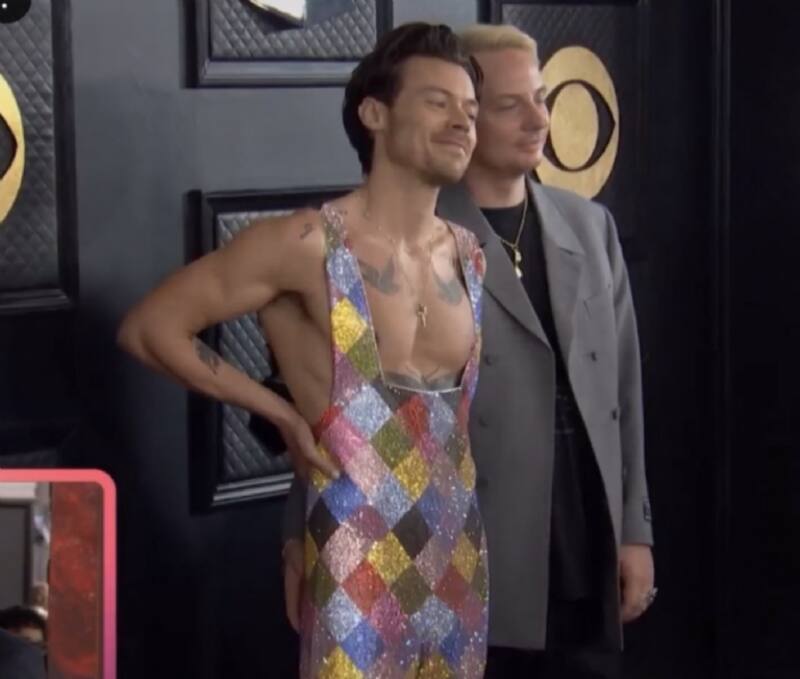 Harpoon se acercó a Styles y puso la mano sobre los glúteos del cantante de As It Was. La escena que duró varios segundos causó la incomodidad del cantante, pese a que no dejó de sonreír frente a las cámaras.