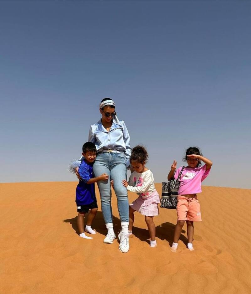 La protagonista de Soy Georgina publicó este martes algunas imágenes del especial día y en ellas se le puede ver junto a algunos de los niños que comparte con el deportista paseando por el desierto saudí. En la galería de 10 fotografías aparecen Cristiano Jr. (11), los mellizos Eva y Mateo (5) y Alana Martina, de la misma edad. Al parecer la pequeña Bella Esmeralda no asistió al paseo. “Un maravilloso día”, fue el título elegido para las postales.