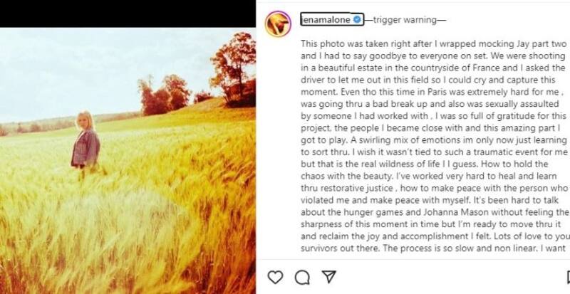 La actriz estadounidense Jena Malone (38), quien encarnó el personaje de Joanna Mason en Los Juegos del Hambre, reveló a través de su cuenta de Instagram que había sido víctima de un ataque sexual durante la filmación de la saga que contempla tres filmes.