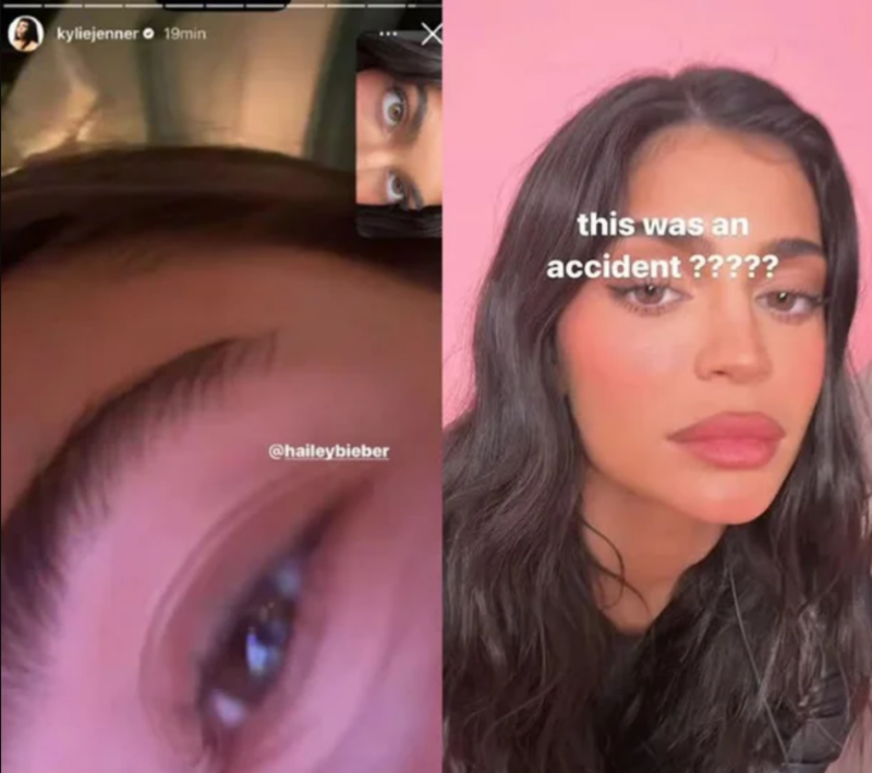 El episodio se generó cuando en TikTok Selena Gómez compartió un video contando cómo había "laminado sus cejas de más", ante esto Hailey y Kylie se burlaron de la exchica Disney mediante Instagram con una storie que enfocaba sus cejas acompañada de un texto irónico: "¿Esto fue un accidente?"