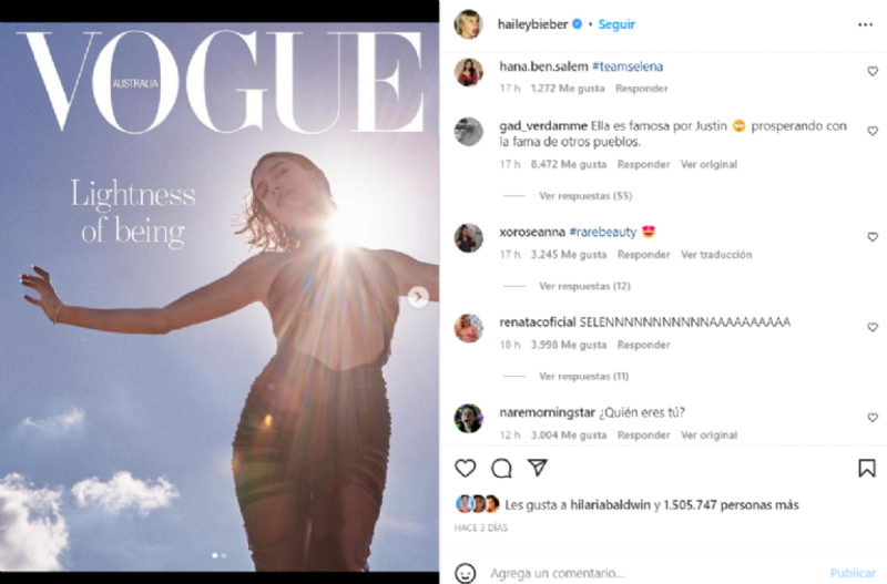 El post más reciente de Hailey Bieber en Instagram ha sido bombardeado de seguidores de Selena Gómez.