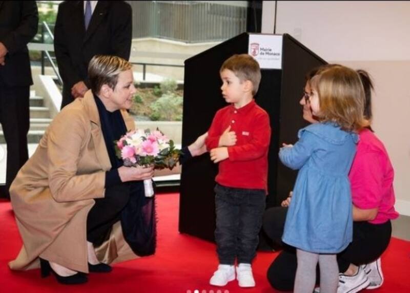 Muy cordiales y formales con los anfitriones, la pareja se instaló prestamente a esperar el inicio de una ceremonia que no les tocaba presidir y a la que fueron los invitados especiales, ya que se trataba de la apertura de una nueva guardería infantil del ayuntamiento monegasco.