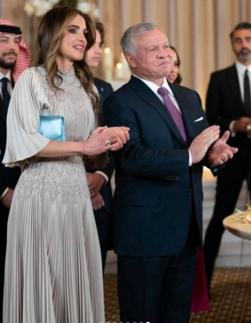 La reina Rania de Jordania (52), anfitriona del palacio real junto a su esposo, el rey Abdalá II (61), fueron los encargados de recibir a los invitados para la ocasión.