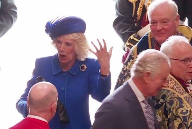 El tormentoso clima de Londres le jugó una mala pasada a la reina consorte cuando llegó a la Abadía de Westminster, el mismo lugar donde ella y Carlos III serán coronados en poco menos de dos meses.