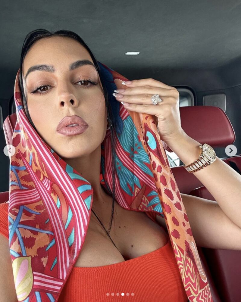 Todo parece indicar que la pareja habría decidido oficializar su compromiso para evitar ir en contra de lo estipulado por la ley y las creencias del país, ya que en las últimas horas, Georgina posó con una nueva y llamativa joya.