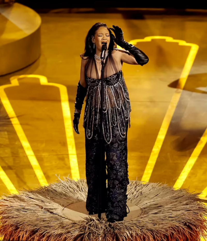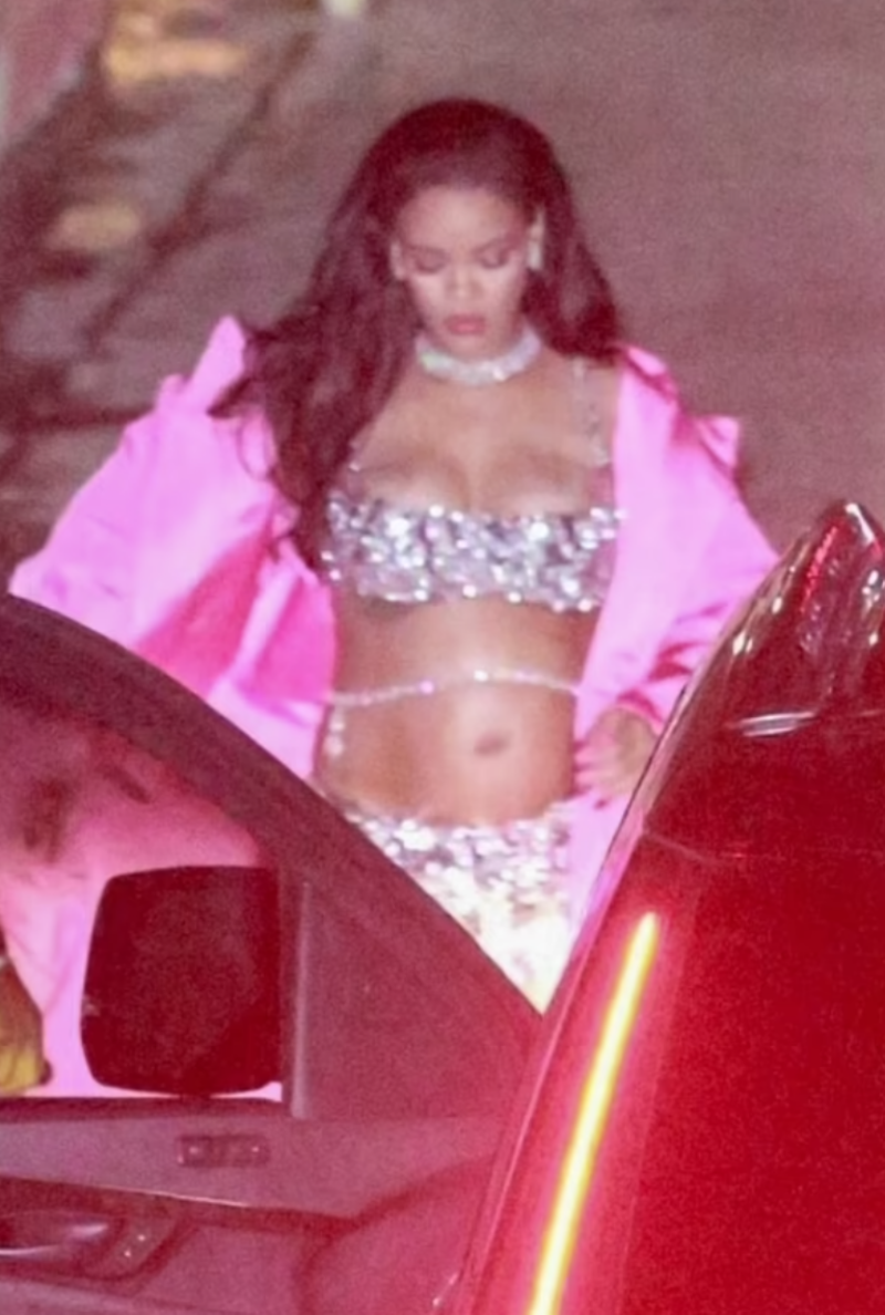 En el cierre de la jornada, Rihanna caminó hacia la entrada de la fiesta con un conjunto plateado con tonos metalizados hecho a su medida por el director creativo de Valentino, Pierpaolo Piccioli. Coronándose así como una de las celebridades más extravagantes en lo que va del 2023.