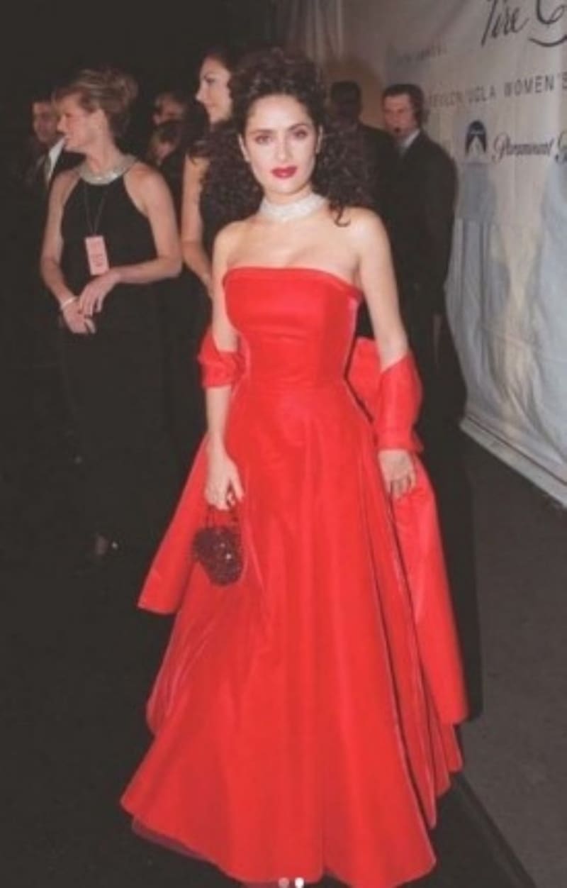 “Sacamos este hermoso vestido de Isaac Mizrahi para Valentina del archivo de Salma. Salma lo usó originalmente en 1997”, reveló Rebecca Corbin-Murray, estilista de la mexicana, en su cuenta de Instagram. En 1997, 10 años antes de que Valentina Paloma naciera, la actriz deslumbró con ese mismo look, pero con una gargantilla de diamantes y llevó su cabello oscuro rizado y peinado con una media cola. Además, llevaba un chal rojo que sostenía con los brazos.