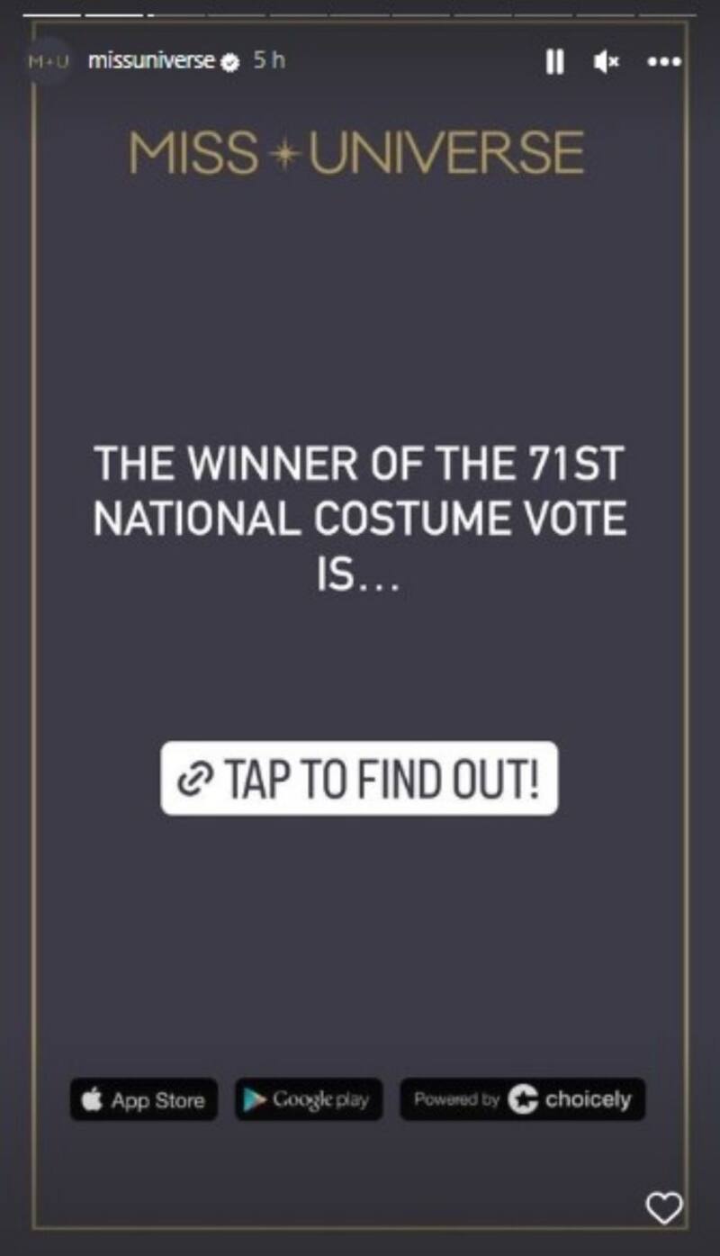 “¡Lo hicimos! Gané la nominación al mejor disfraz nacional en Miss Universo y dediqué este premio a cada ucraniano, cada guerrero de la luz luchando ahora por el futuro de Ucrania. Por primera vez en la historia del certamen Miss Universo, una ucraniana ganó el 1er lugar de 86 países al mejor disfraz nacional. Estoy abrumada por las emociones”, escribió la reina ucraniana en su cuenta de Instagram.