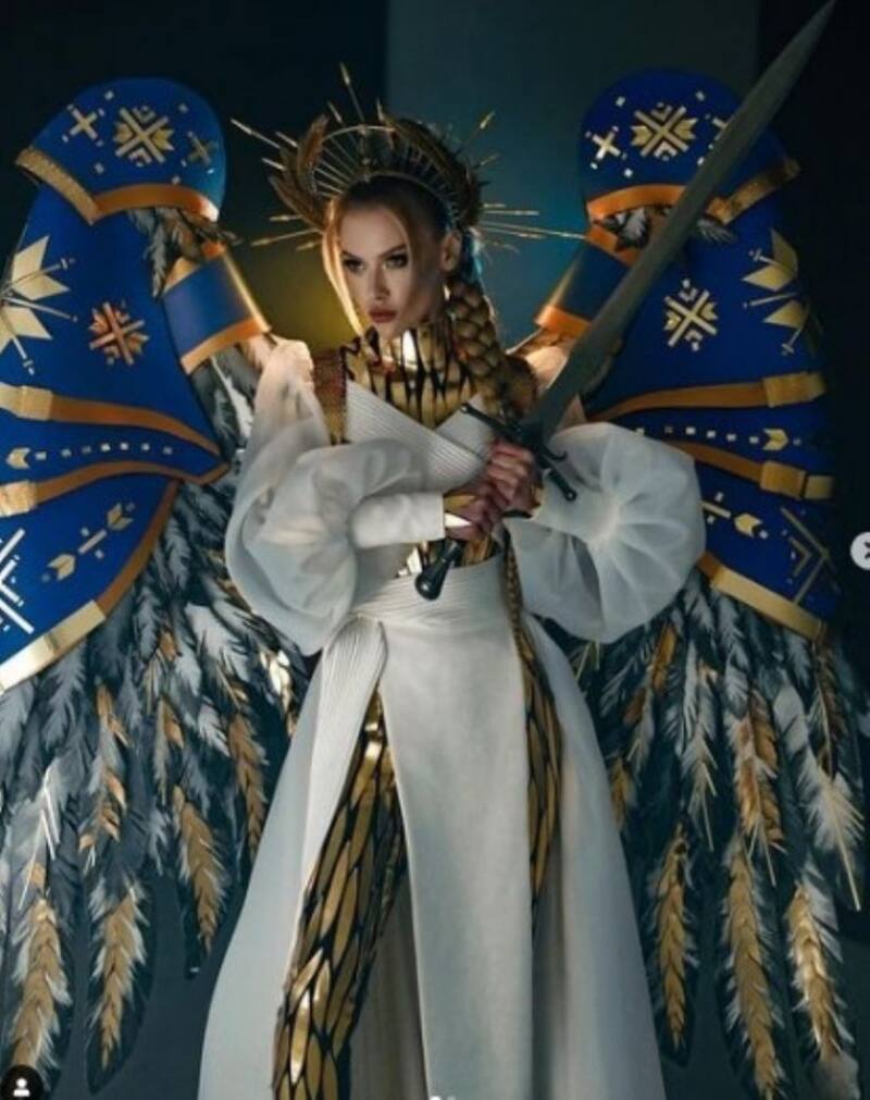 De acuerdo a la prensa internacional, los diseñadores del traje ganador se inspiraron en el arcángel Miguel, que se cree que es el santo patrono celestial de Kiev, capital de Ucrania. Asimismo, trascendió que los creadores del disfraz trabajaron durante cuatro meses para crear los atuendos para la competencia.