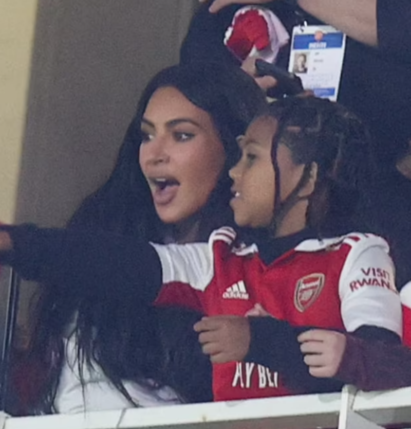 La estrella de televisión Kim Kardashian fue vista durante un paseo familia junto a su hijo, Saint West (7), quien vistió orgullosamente una camiseta del Arsenal y entró de la mano de su madre al Emirates Stadium para ver jugar a su equipo favorito, lugar donde la empresaria se mostró muy interesada en la Europa League y en un jugador en particular.