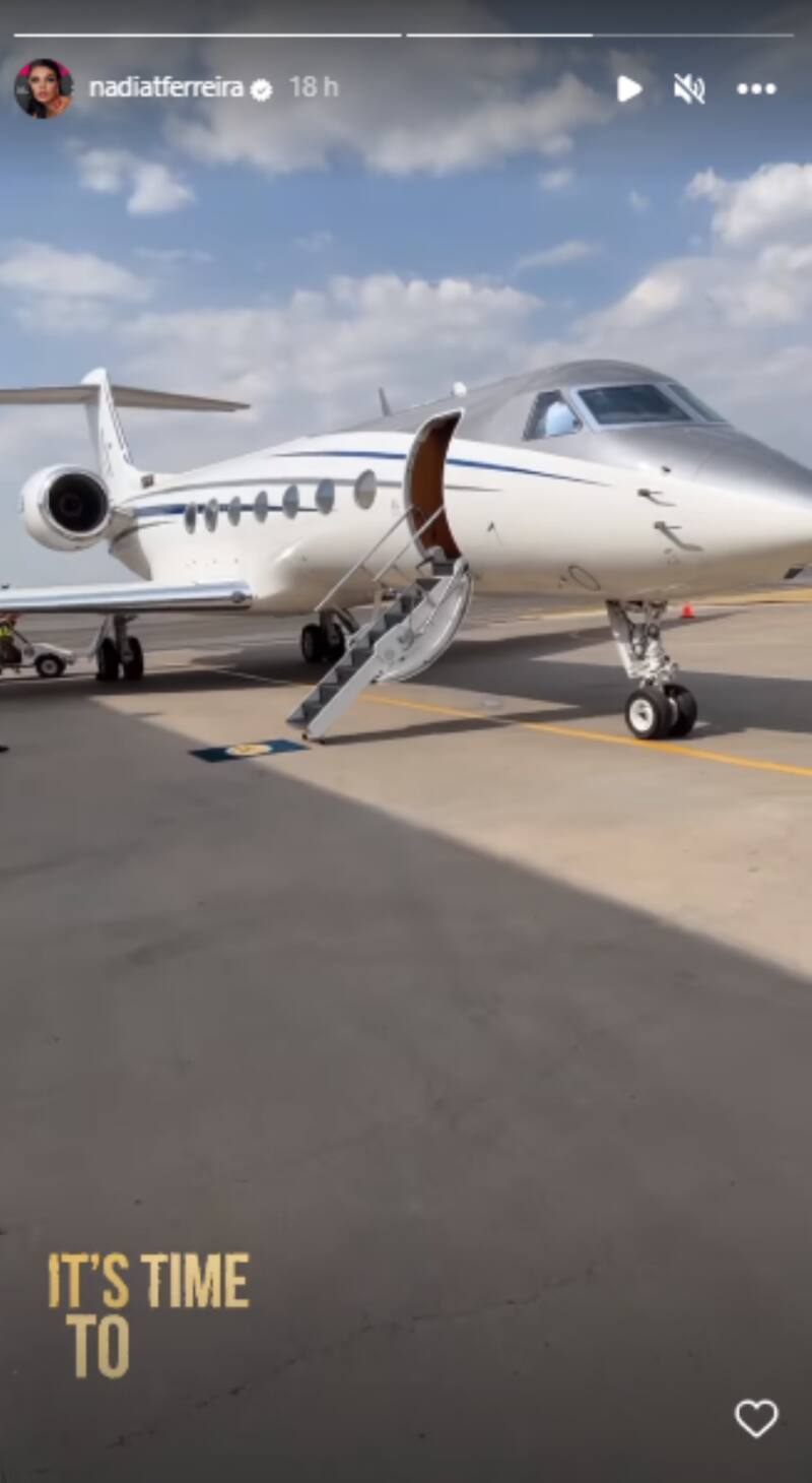 Con la frase: “Es hora de volar”, la ex reina de belleza se mostró muy sonriente junto a su esposo en las historias de su Instagram mientras ambos caminan agarrados de la mano en la pista de un aeropuerto a la puerta de su jet privado, el cual los trasladaría hasta la ciudad californiana de Sacramento.