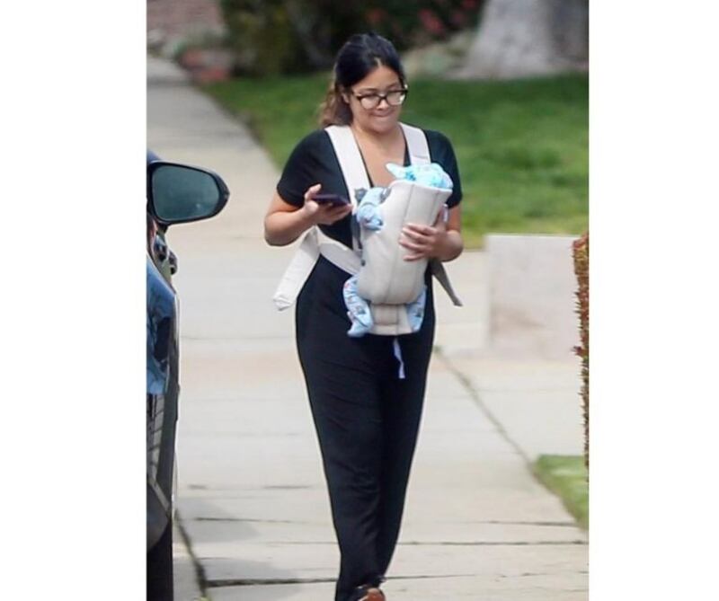 La actriz y su esposo dieron la feliz noticia de su en junio del año pasado, el mismo día que Gina cumplió 38 años. Después de ese anuncio, la pareja tuvo sumo cuidado de alejar su embarazo del foto mediático. Los actores están casados desde 2019. Las primeras fotos muestran a Gina con un portabebés en su pecho mientras hace una caminata.
