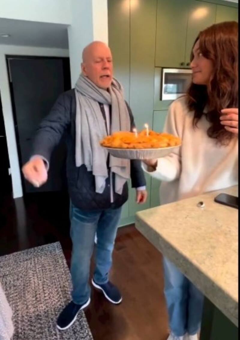 Salvo por su mirada extraviada en algunos momentos del video, de casi un minuto de duración, Bruce Willis se ve perfectamente adaptado al contexto y en completo conocimiento de que él es el festejado, interactuando con los demás de una manera muy coloquial, incluso entonando el Happy Birthday que el resto de los suyos le dedican.