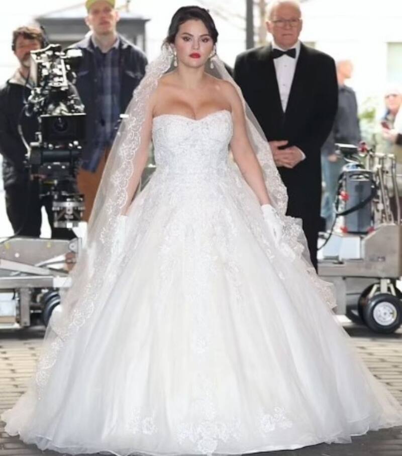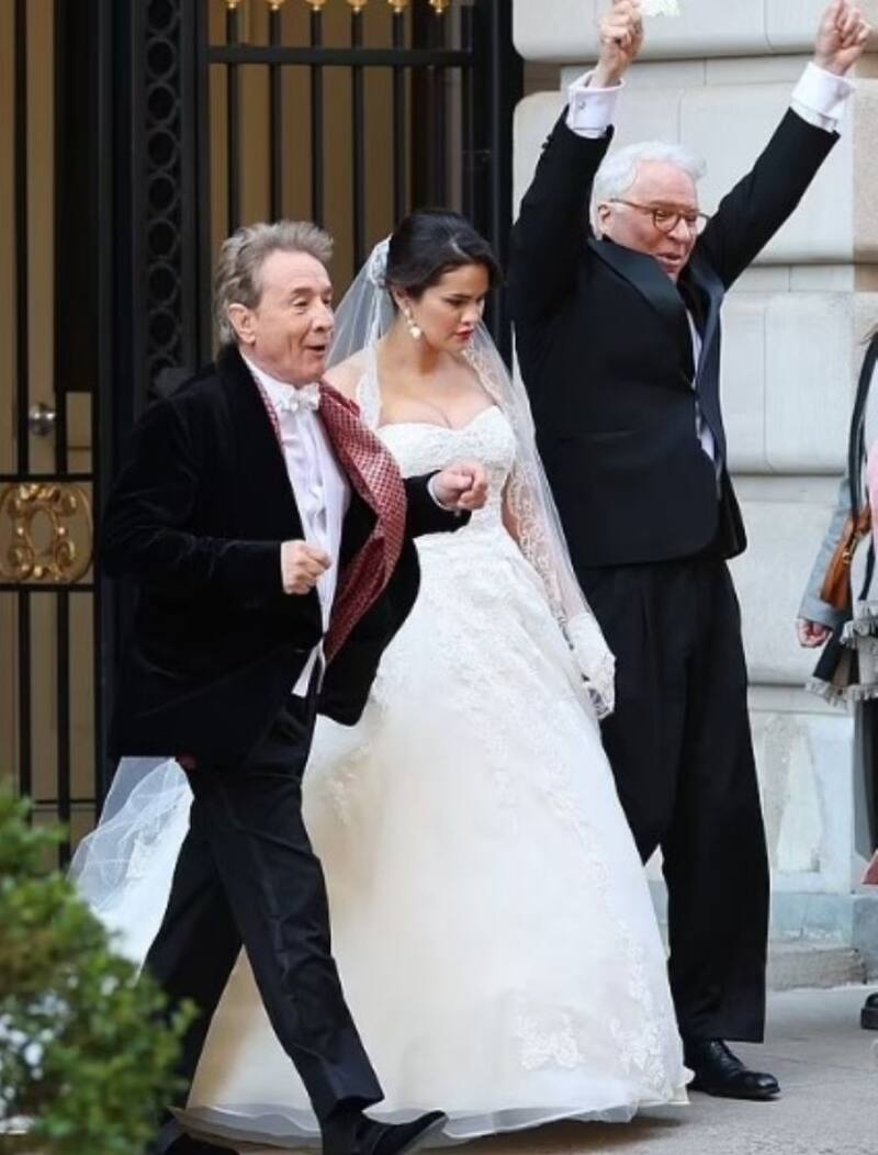 Selena Gomez iba rumbo a la iglesia para casarse, con su vestido de novia, al lado de Martin Short y Steve Martin, encarnando el papel de Mabel Mora, sí, la misma misteriosa residente de la serie de Netflix Only Murders in the Building.