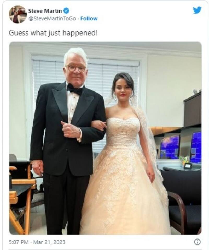 El tercer protagonista de Only Murders in the Building, Martin Short, también en Twitter, puso una imagen junto a la "novia", y posteó: "Resulta que esto también sucedió".