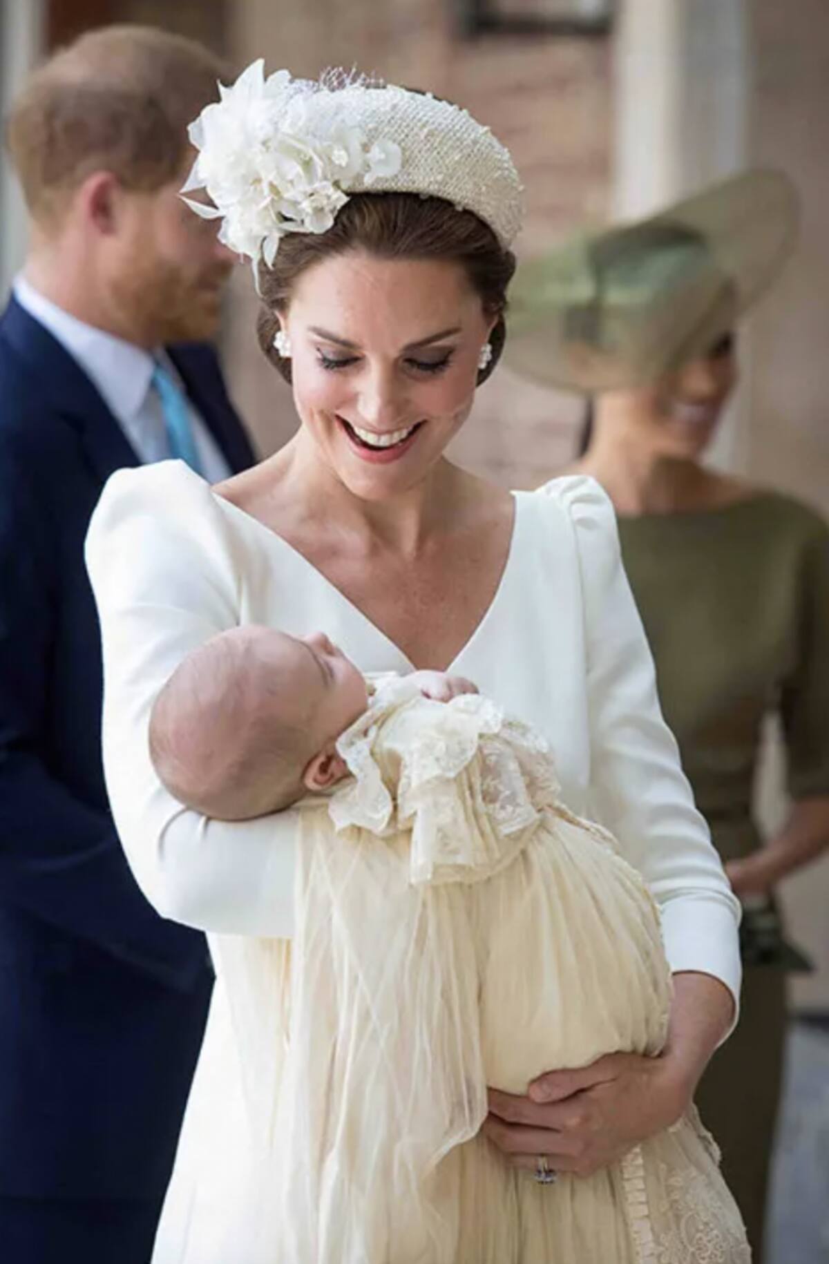 El bautizo del pequeño Príncipe tuvo lugar tres meses después de su nacimiento, en julio de 2018, en la Capilla Real del Palacio de St James. La princesa de Gales portó un vestido blanco de Alexander McQueen y una diadema de perlas y flores de Jane Taylor, mientras que Louis llevaba el tradicional ropón de bautizo real.
